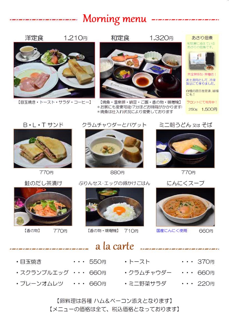 早朝スタートのため軽食メニューもご用意しております。 メニュー詳細